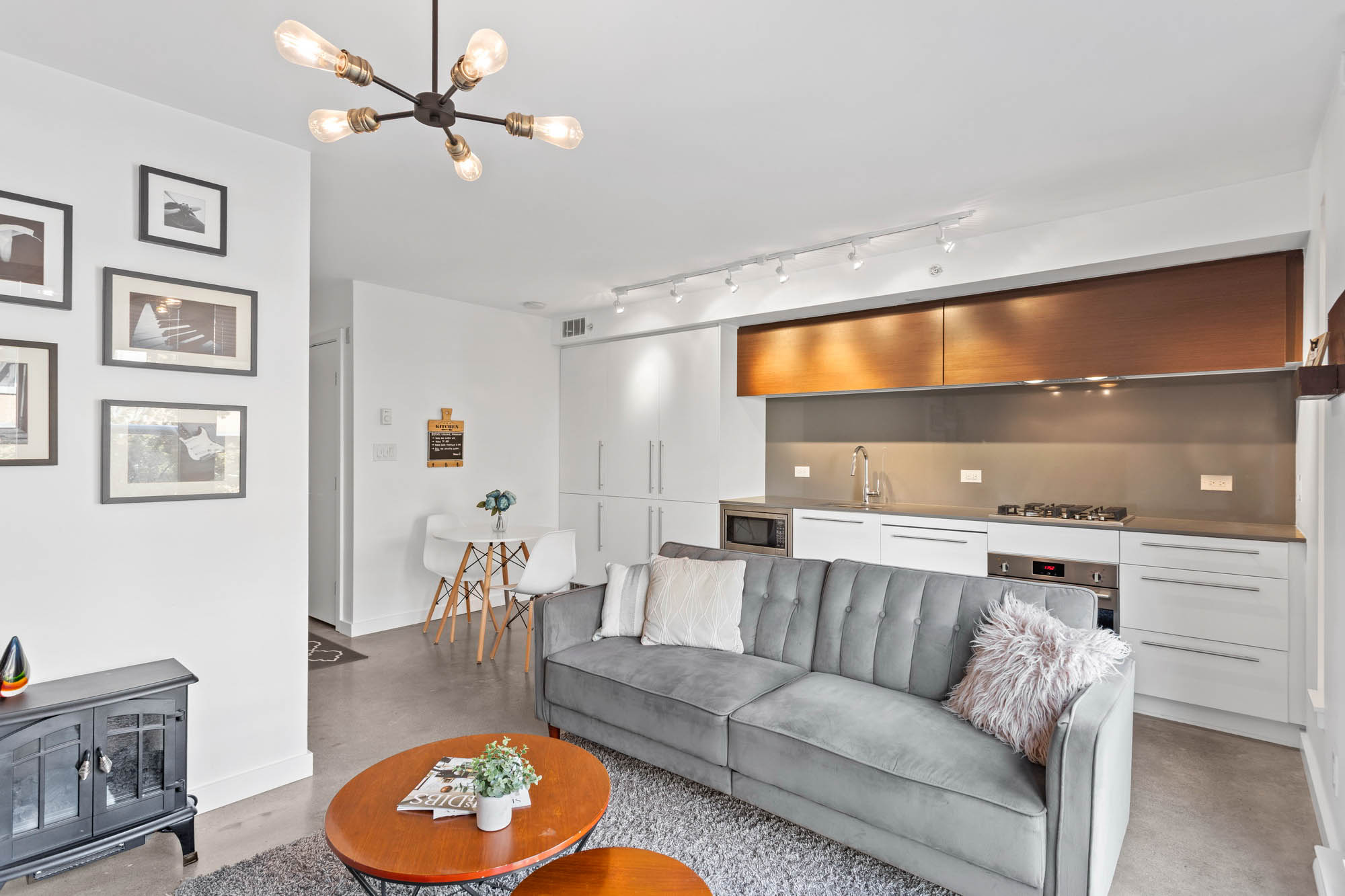 Step inside this beautifully designed end-unit and feel the immediate sense of style. The open, loft-style layout is anchored by chic polished concrete floors that flow throughout the space. Unlike many modern condos, this home features a proper, fully enclosed bedroom—no sliding doors here—offering you a true sanctuary for rest and privacy.